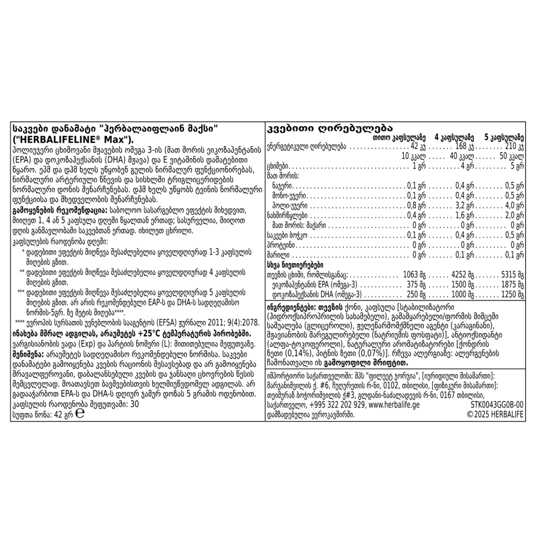 *ჰერბალაიფლაინის წინა ფორმულასთან შედარები: საშუალოდ 3-ჯერ მეტია 1 კაფსულაში EPA-სა და DHA-ის შემცველობა.
